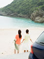 ドライブやレジャーを楽しむ若い男女のアクティブな休日イメージを収録。