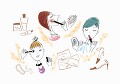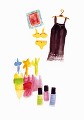 若い女性のライフスタイルイメージを人物ではなく身の回りの小物などを使いポップに表現されています。