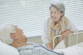 夫婦で新緑を楽しんだり病院での診察、デイサービス施設で仲間達と過ごす楽しいひととき。一生懸命に頑張る若い介護士と笑顔の絶えない明るく前向きなシニア・介護イメージです。