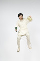 さまざまな衣装やアイテムで空中ポーズを決める若いファミリー。ストップモーション風に撮影した、躍動感あふれるジャンプアクション。