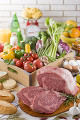 肉、魚、野菜、果物。豊かな食材をぎっしりと詰め合わせ。
