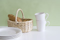 テーブル&キッチンウエア、ランドリーグッズ、ステーショナリーをアートに魅せる、鮮やかな背景との組み合わせ。