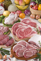 肉、魚、野菜、果物。豊かな食材をぎっしりと詰め合わせ。