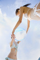 抜ける青空の下で活発に跳ねるビキニ。躍動感あふれるアクションで、画面いっぱいにエネルギッシュな開放感を表現。ビーチボール、浮き輪、ジェットスキーから夏のおしゃれアイテムまで満載。