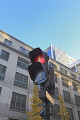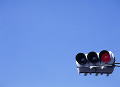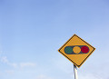 空や自然・街並を背景に、交通標識と信号機のある風景。シンプルな画面に、オリジナルの旅物語を描いてください。