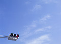 空や自然・街並を背景に、交通標識と信号機のある風景。シンプルな画面に、オリジナルの旅物語を描いてください。