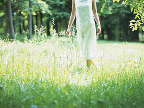 爽やかな草原で休日を過ごす女性の姿を収録。