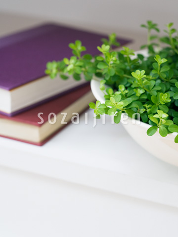 色見本のG&E > 素材集 > 素材辞典 > 素材辞典 Vol.184〈インテリア-グリーン&ハーブ編〉 > ペペロミアと本 - HQ130.jpg