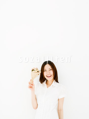 色見本のG&E > 素材集 > 素材辞典 > 素材辞典 Vol.190〈笑顔のプレゼント編〉 > 花束を持つ女性 - HW008.jpg