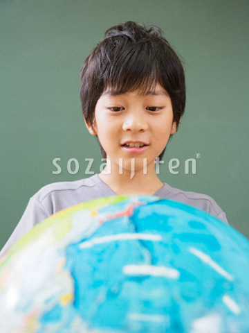 色見本のG&E > 素材集 > 素材辞典 > 素材辞典 Vol.209〈小学生-楽しい教室編〉 > 地球儀を見る小学生 - JR039.jpg