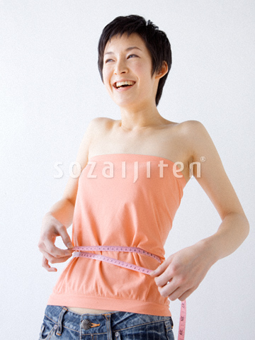 色見本のG&E > 素材集 > 素材辞典 > 素材辞典 Vol.213〈健康-ヘルスケア編〉 > ウェストを測る女性 - JV015.jpg