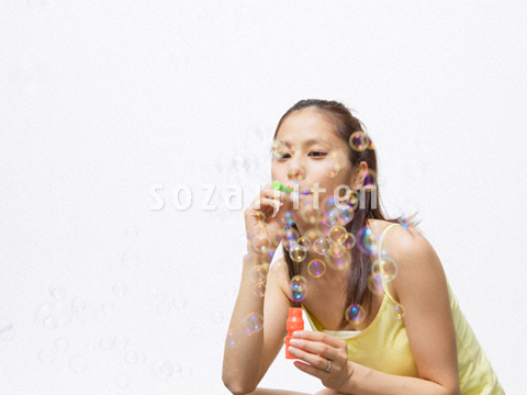 色見本のG&E > 素材集 > 素材辞典 > 素材辞典 Vol.219〈ガールズ-スマイル&ポーズ編〉 > シャボン玉遊びをする若い女性 - KB027.jpg