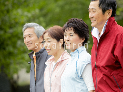 色見本のG&E > 素材集 > 素材辞典 > 素材辞典 Vol.223〈シニアライフ-仲間と家族編〉 > ウォーキングをするシニアグループ - KF071.jpg