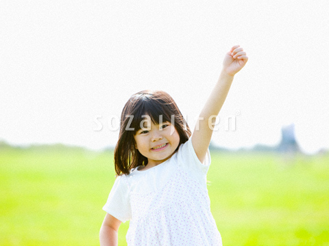色見本のG&E > 素材集 > 素材辞典 > 素材辞典 Vol.232〈くらし・環境-みんなの未来編〉 > 草原でポーズをとる女の子 - KQ059.jpg