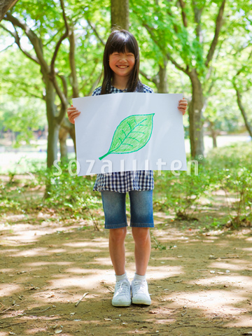 葉の絵を持つ少女 - KS004.jpg 写真素材