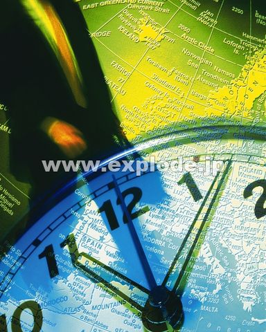 ビジネスマン、大都市、時間という3つの要素を使って都会のビジネスシーンを表現した合成加工イメージを収録。