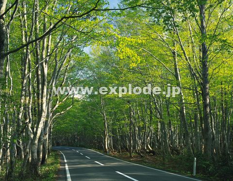 色見本のG&E > 素材集 > DAJ digital images > DAJ058 ROAD 【オン・ザ・ロード】 > 新緑のブナと道路 - da058008.jpg