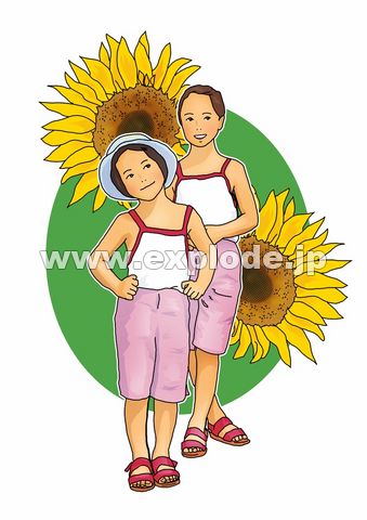色見本のG&E > 素材集 > DAJ digital images > DAJ227 ILLUSTRATION / KID'S LIFE 02 【イラストシリーズ〜子供のいる風景】 > ヒマワリと子供 - da227014.jpg