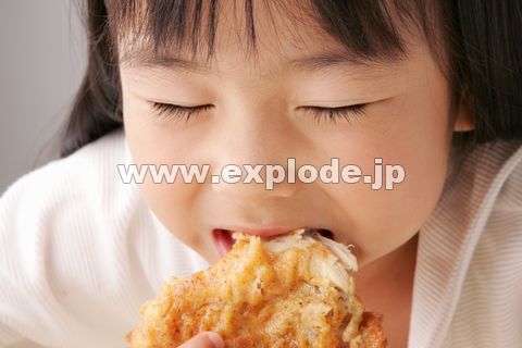 色見本のG&E > 素材集 > DAJ digital images > DAJ335 TASTE GOOD 【おいしい顔】 > フライドチキンを食べる女の子 - da335048.jpg