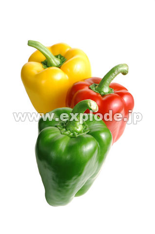 色見本のG&E > 素材集 > 創造素材 > 食シリーズ > 創造素材 食シリーズ[30]スパイス > 3個のパプリカ(緑・赤・黄) - F030085.jpg