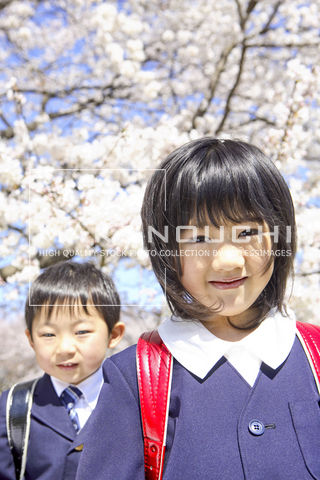 色見本のG&E > 素材集 > makunouchi > Makunouchi 067 Spring Event > 桜の前に立つ小学生男女 - af0100007468.jpg