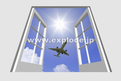 色見本のG&E > 素材集 > makunouchi > Makunouchi 119 Windows of The World > 窓から旅客機と入道雲と光 - gf0110079078.jpg