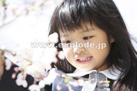 色見本のG&E > 素材集 > makunouchi > Makunouchi 123 Child together > 桜の花を触る小学生女子 - af0170018379.jpg