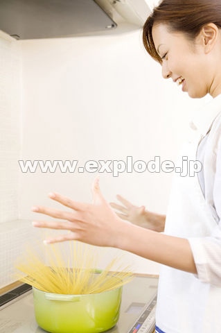 色見本のG&E > 素材集 > makunouchi > Makunouchi 139 ガール > 鍋にパスタを入れる女性 - af9980025696.jpg