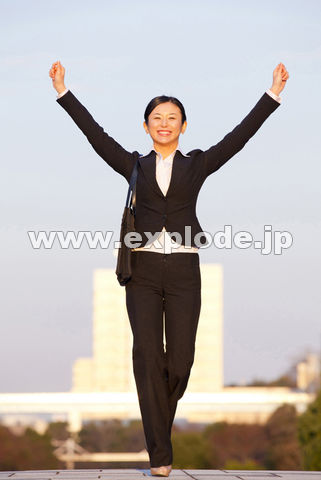色見本のG&E > 素材集 > makunouchi > Makunouchi 164 Business Person > 両手を挙げて微笑むOL - af0100037678.jpg