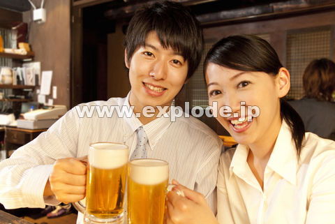 色見本のG&E > 素材集 > makunouchi > Makunouchi 174 Izakaya > ビールで乾杯するビジネスマンとOL - af9920042213.jpg
