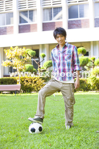 色見本のG&E > 素材集 > makunouchi > Makunouchi 176 College Students > サッカーボールを足元に置く男子大学生 - af0100049975.jpg