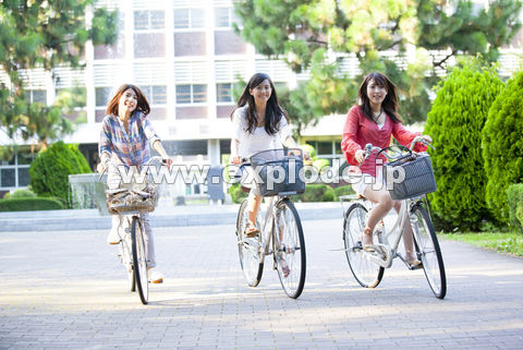 自転車で並走する女子大学生 - af0100050011.jpg 写真素材