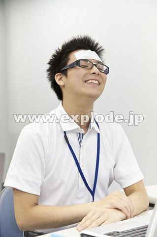 色見本のG&E > 素材集 > mixa green > mixa green vol.007 クールビズ > 冷却ジェルシートを貼って目を閉じる男性 - MG007075.jpg