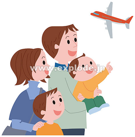 色見本のG&E > 素材集 > イラスト村 > イラスト村 Vol.46 家族旅行 > 空港から飛行機を見る家族 - ILM46007.jpg