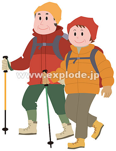 色見本のG&E > 素材集 > イラスト村 > イラスト村 Vol.47 熟年世代の旅行 > ハイキングをする中高年夫婦 - ILM47056.jpg