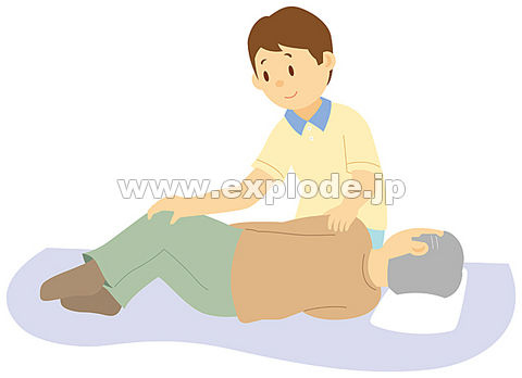 色見本のG&E > 素材集 > イラスト村 > イラスト村 Vol.55 介護と福祉 > 介護士に寝返りを介助してもらう老人男性 - ILM55085.jpg