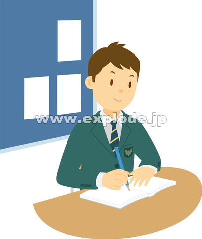 色見本のG&E > 素材集 > イラスト村 > イラスト村 Vol.61 ライフステージ 男性編 > 教室で勉強する高校生男子 - ILM61053.jpg