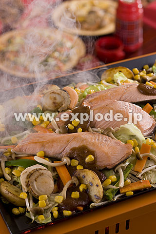 色見本のG&E > 素材集 > MIXAイメージライブラリー > MIXAイメージライブラリーVol.362 バーベキューいろいろ > ちゃんちゃん焼きをコンロで焼く - ML362091.jpg